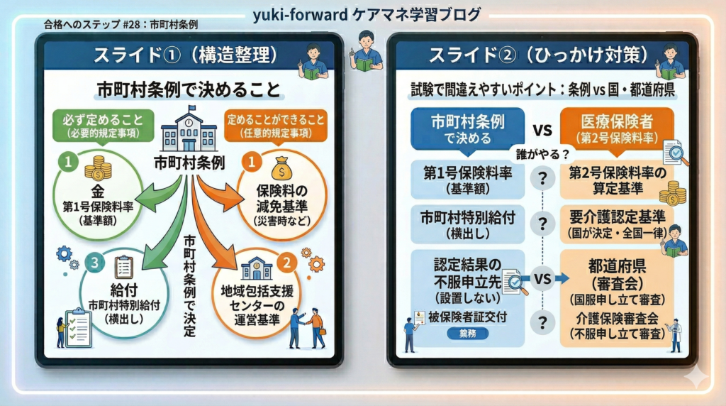 【ケアマネ試験対策#28】市町村条例を完全攻略!保険料・特別給付のひっかけ対策も万全