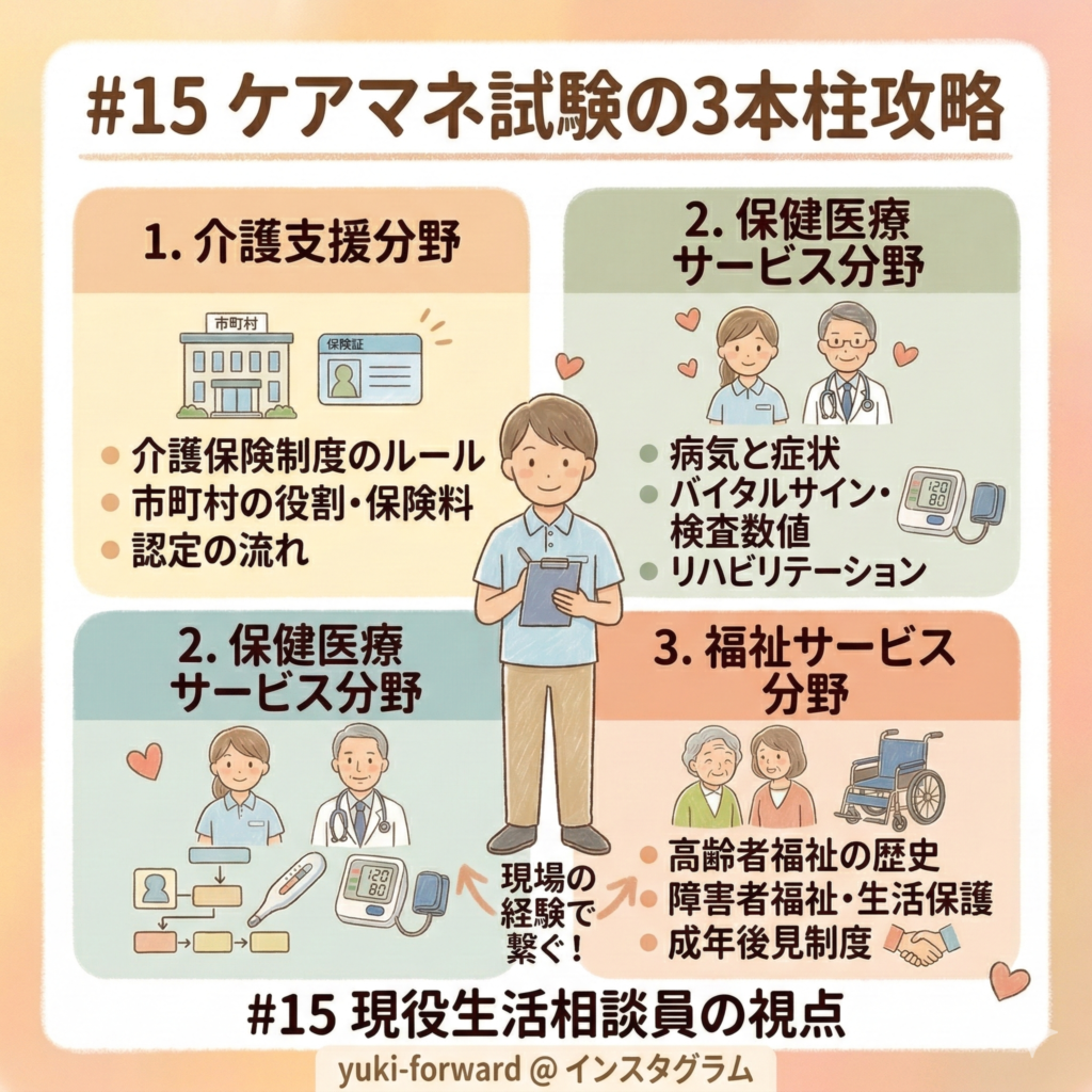 【#15】ケアマネ試験の「3本柱」を攻略!現場経験をそのまま得点力に変える方法