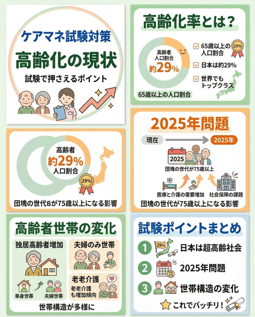 今日はこの「高齢化の現状」を、試験ポイントと現場の感覚をつなげながら整理してみます。